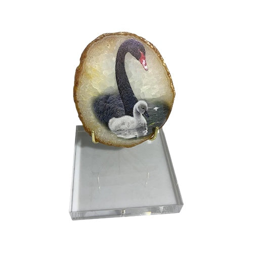 View full detailsAgate Slice Natural With Printed Design - Swan Pair