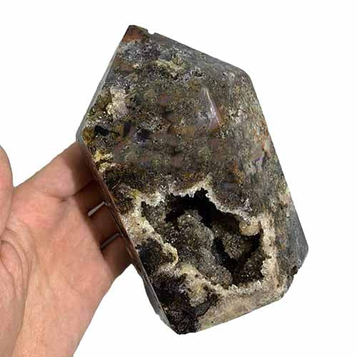 Agate Druzy is a type of agate crystal covered with tiny, sparkling quartz crystals on its surface. It combines the grounding and stabilizing prope...