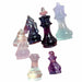 This elegant chess set includes one set of pastel Fluorite pieces and one set of deep purple Fluorite pieces. Each stone showcases the natural translucence and vibrant color variations Fluorite is known for.