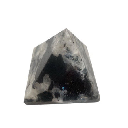 The Rainbow Moonstone Pyramid is a polished crystal shaped into a pyramid, showcasing the stone’s subtle flashes of rainbow sheen. Known for its co...