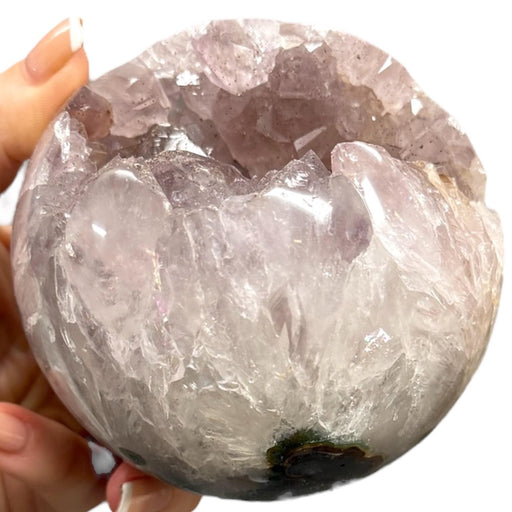 Spirit Quartz is described as a crystal of Harmony and Alignment.Its core, a larger, candle-shaped crystal with a faceted termination point, is enc...
