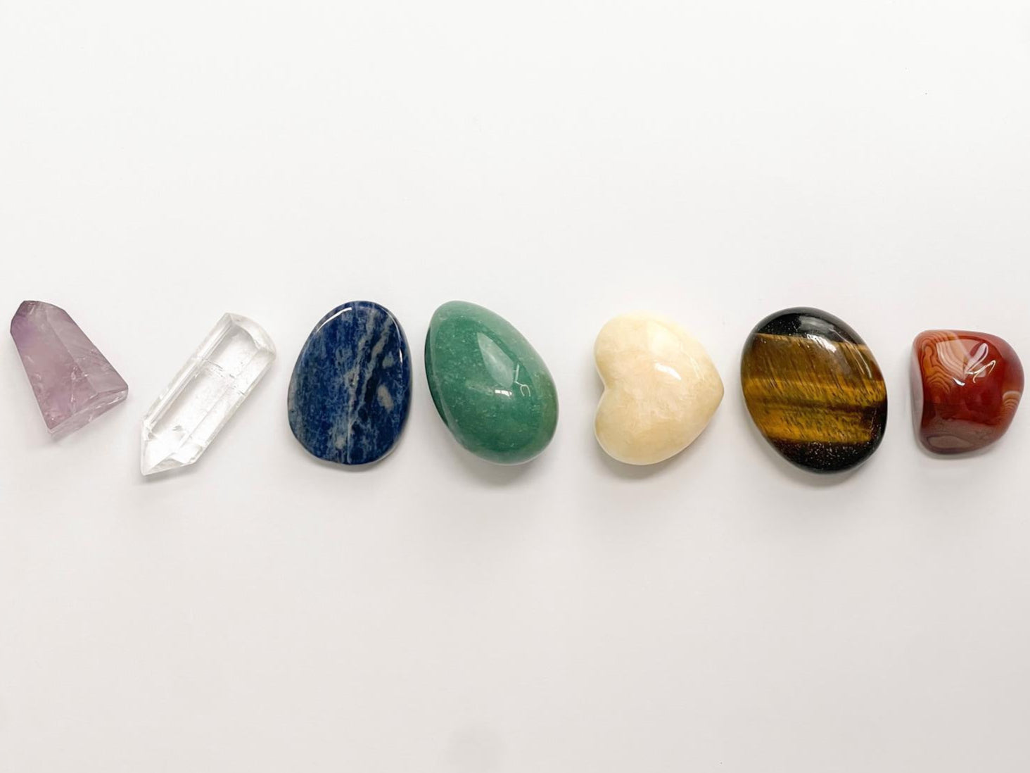 Each kit includes a unique selection of 7 crystals, each corresponding to a specific chakra. While every box is intuitively chosen and may vary, you will receive one for each (each to the value of $20):