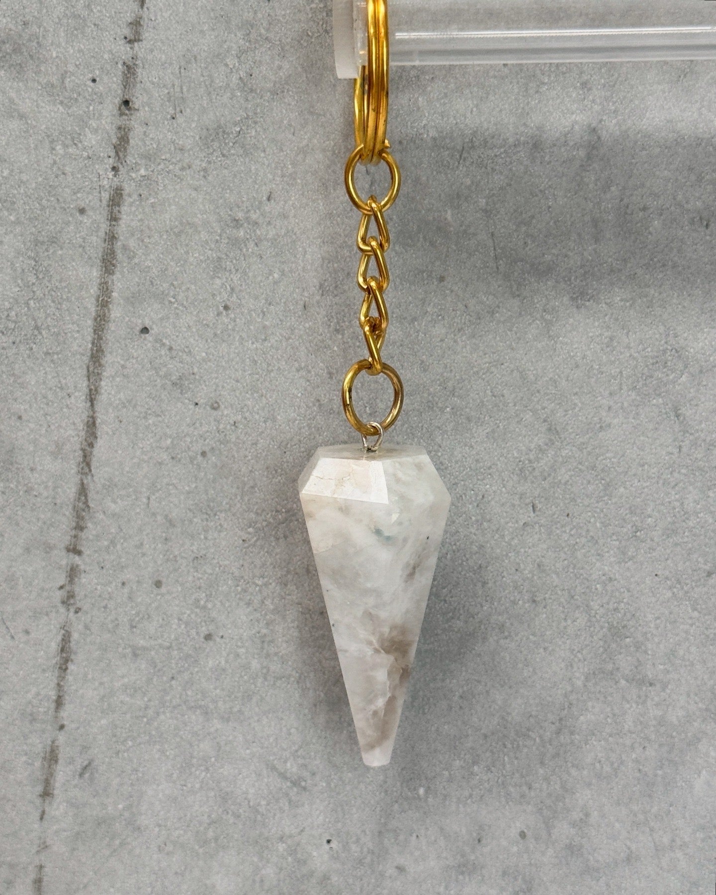 Add a touch of natural beauty to your everyday carry with these elegant crystal keyrings, each featuring a raw or polished stone suspended from a sleek gold chain. Choose from a range of thoughtfully selected crystals including Moonstone, Sodalite, Rose Quartz, Lepidolite, Tiger Eye, Aventurine, and Selenite.