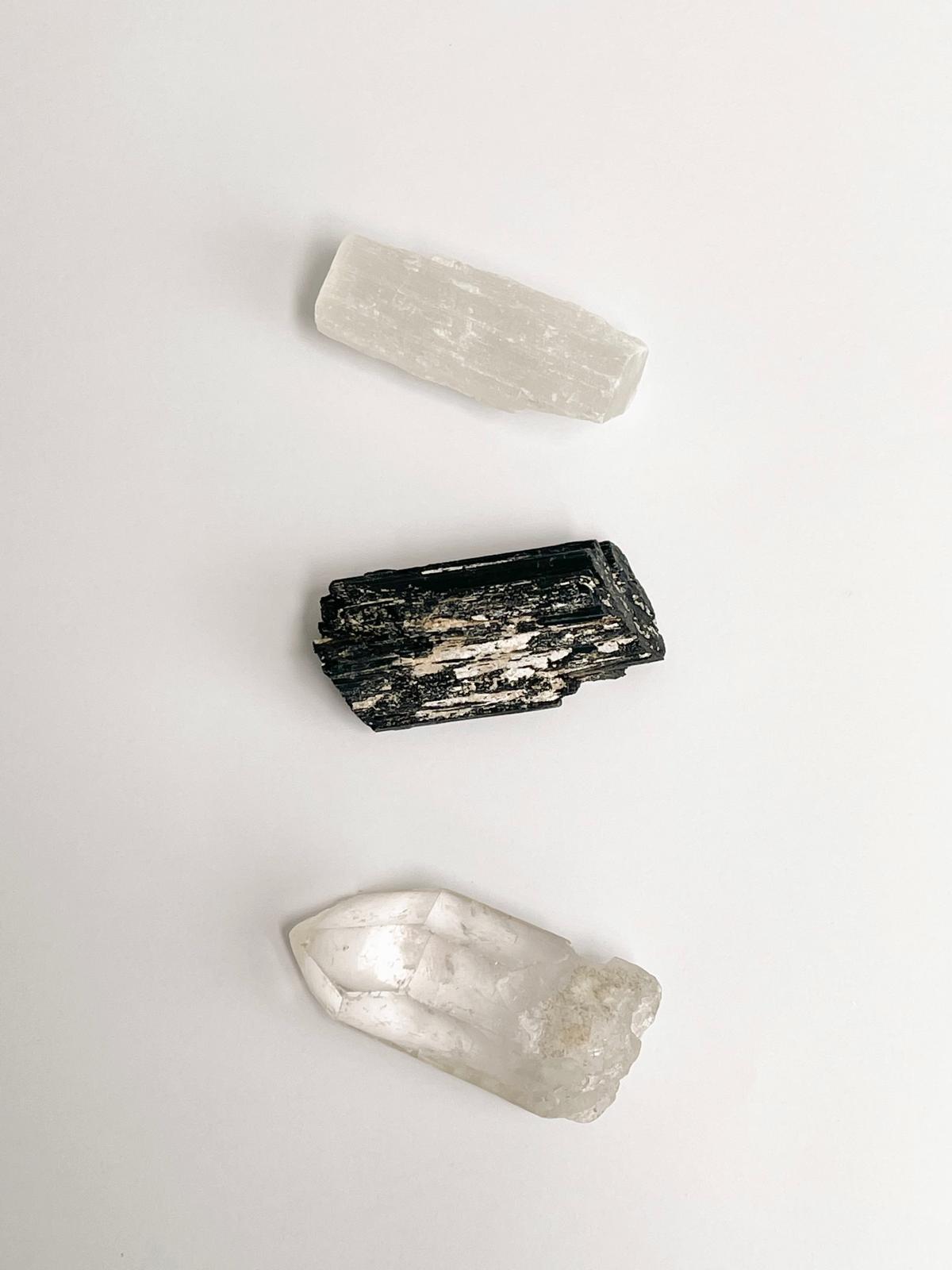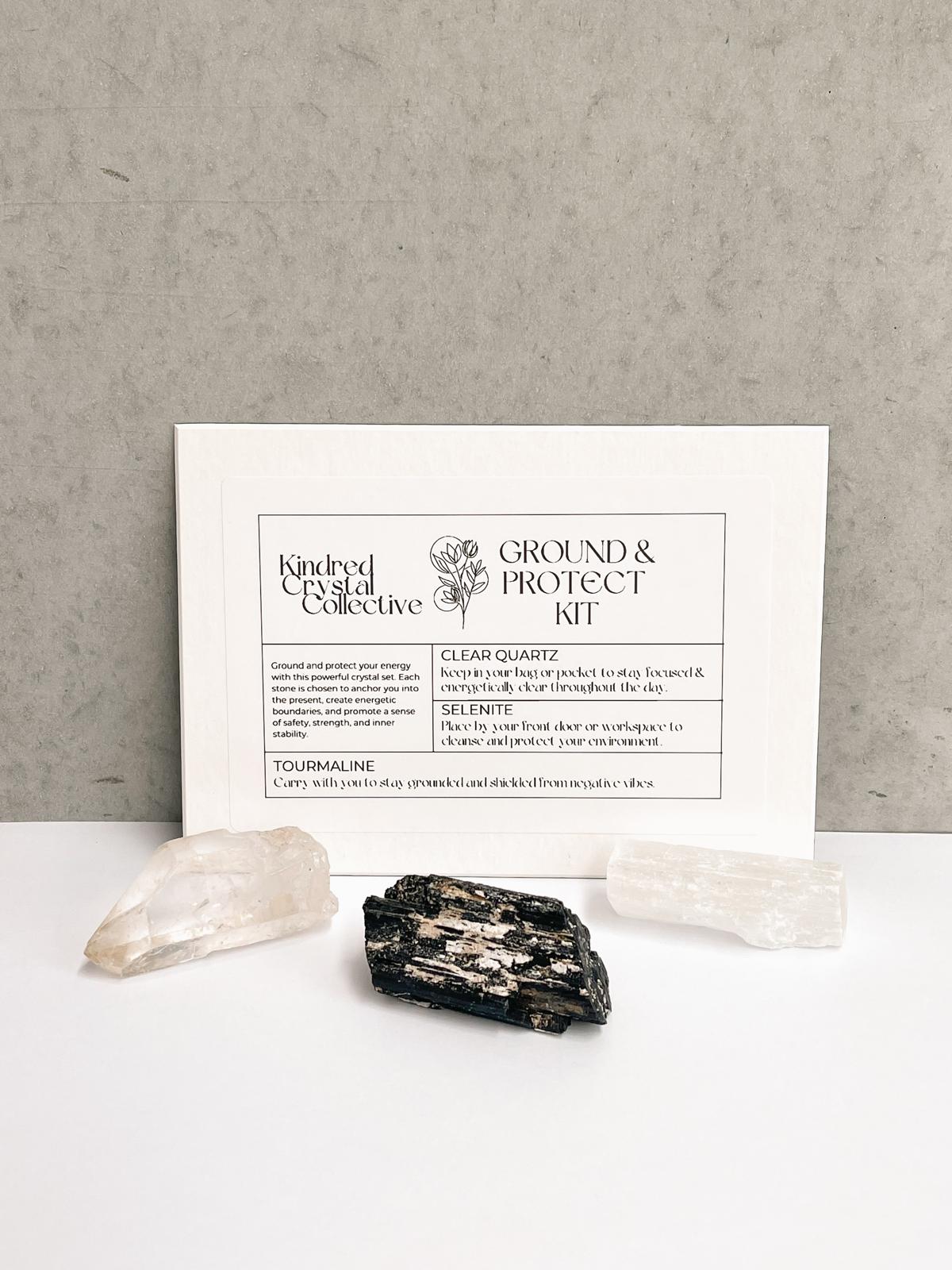 Establish a strong foundation and create a protective energy barrier with our Ground & Protect Kit, featuring raw, unpolished pieces of Clear Quartz, Black Tourmaline, and Selenite. This carefully curated set is designed to help you ground your energy and shield yourself from negativity, promoting a sense of safety and stability.