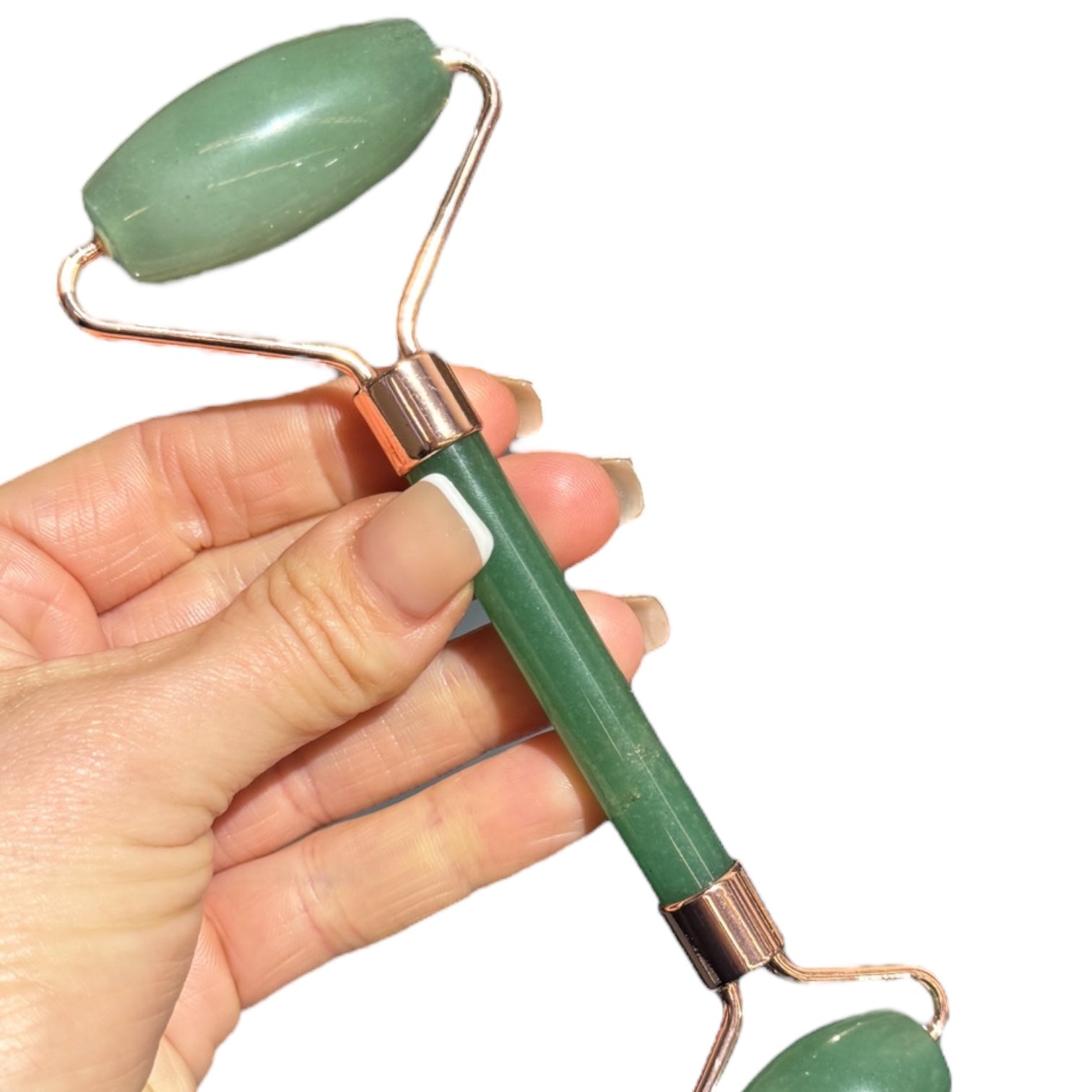 A facial roller improves serum absorption, boosts circulation, improves lymphatic drainage, de-puffs complexion and firms skin.