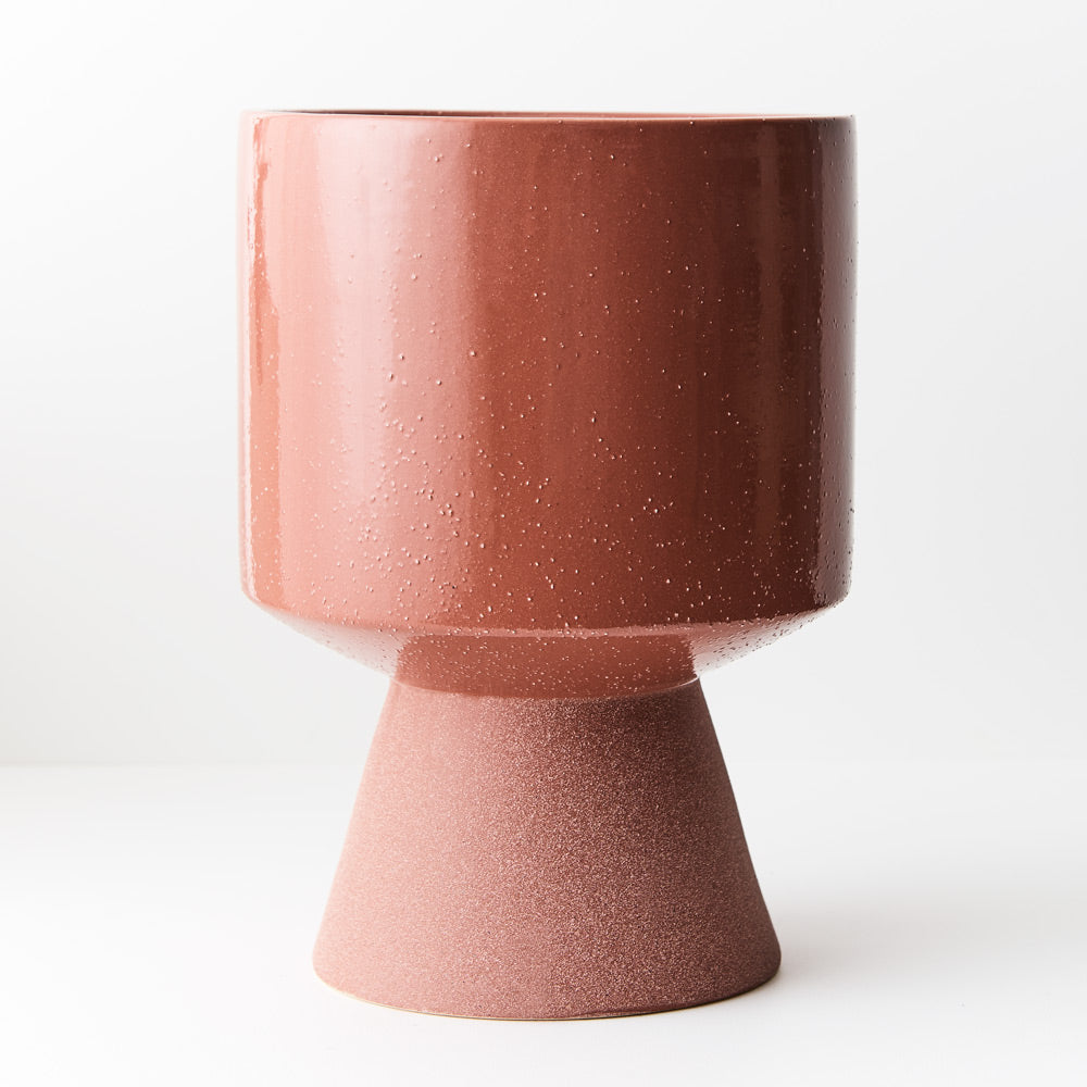 Our sculptural pot Palandro in Rouge can be styled by adding some trailing greenery or a lush potted plant or simply style on it's own as a decorative piece in any space. This ceramic pot is handmade.