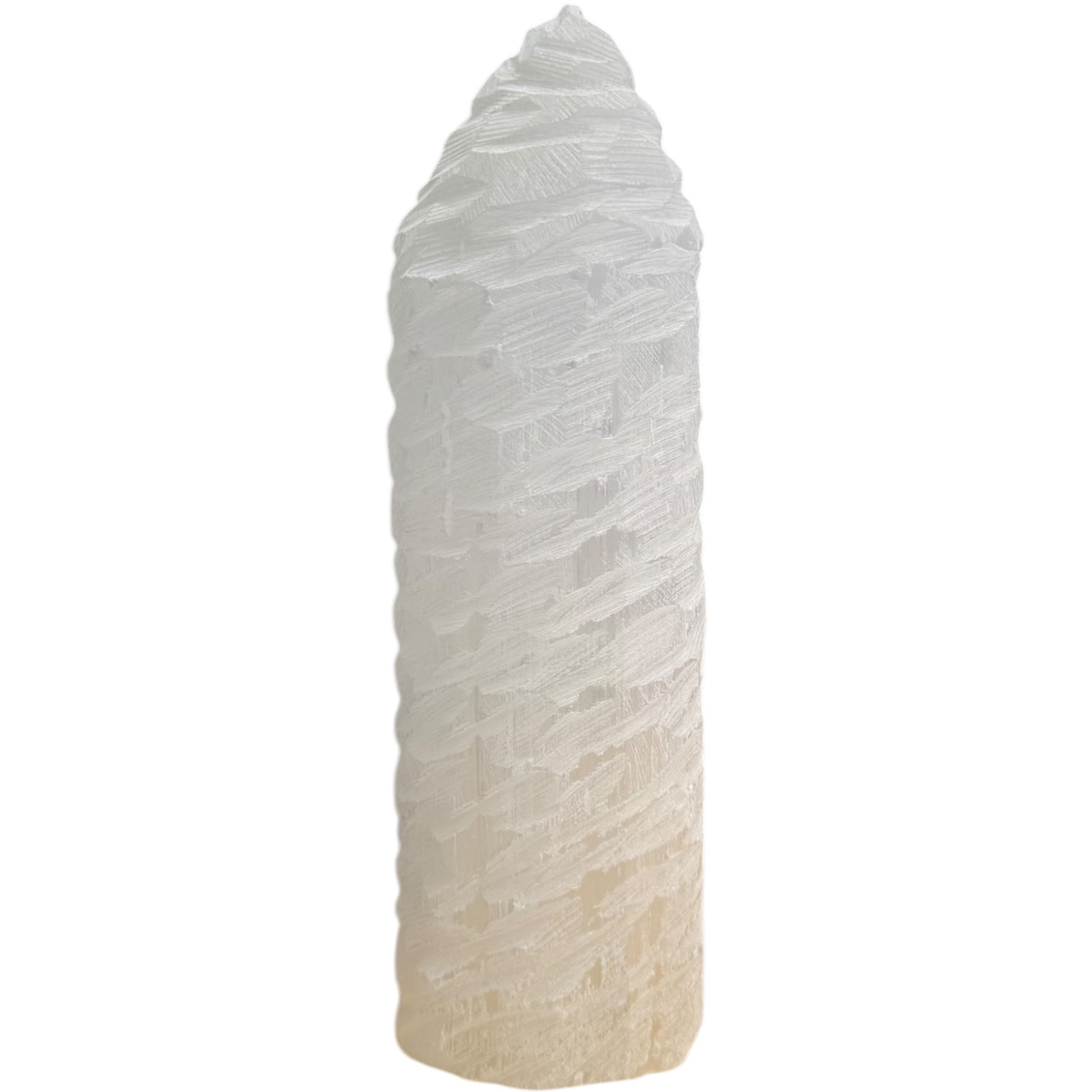 30cm Swirl Etched Selenite Lamp – Modern, Protective & Cleansing